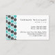 Modern profile or business card featuring a grey and aqua blue hexagon border. Customisable name and title on the front and name, title / company name and contact information on the back. Dark grey text.