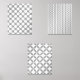 A set of gorgeous geometric light grey abstract designs. This print set pack consists of polka dots, chevron strips and a Moroccan trellis design