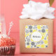 Modern pattern features large and small bubbles of yellow and shades of grey on white background. Personalise in centre white text bubble.