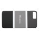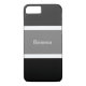 Modern, chic and stylish phone case with a grey, black and white stripe pattern. Large black and grey stripes with small white stripes. Your name printed in a white text.