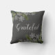 This beautiful grey pillow, featuring clusters of one of my original snowflake photos intertwined with pine and juniper berries, puts a modern yet elegant twist on holiday decor. The text— blessed on one side, grateful on the other— can be customised to any affirmation or name that you prefer. An inspirational pillow to brighten your home at Christmas or all winter long. Would also make a wonderful seasonal gift for newlyweds or new home owners!