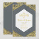 Modern Grey Chic Gold Glitter Flakes Glam Wedding Invitation