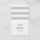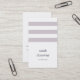 Modern and chic business card design in a unique vertical format features three wide greyed lavender stripes on a white background, with your name and business name or title in an attractive mix of lowercase serif and modern caps typefaces. Add your full contact information to the back in rich midnight blue. Suitable for any occupation; example shown for interior design professions.