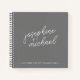 This simple modern grey wedding guest book features easy to love colours for your minimal modern wedding. This design features playful cursive typography and is fully customisable to include the bride and grooms first names and is a budget friendly and cost-effective solution so you can spend on the most important items for your special day.