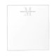 This notepad features a clean, minimalist design with a large, light grey serif letter centred near the top. Overlaid on it is a smaller line of text in a modern sans-serif font, creating a sleek and elegant look. The white background and simple layout give it a refined, professional appearance.
