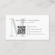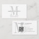 This business card design features a sleek and minimal style with a large Grey monogram in the background for a bold yet elegant touch. The front highlights the name and title in a clean, modern font, while the back includes a QR code alongside neatly arranged contact details with simple icons.
