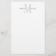 This Stationery features a clean, minimalist design with a large, light grey serif letter centred near the top. Overlaid on it is a smaller line of text in a modern sans-serif font, creating a sleek and elegant look. The white background and simple layout give it a refined, professional appearance.
