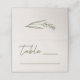 A minimal and modern wedding place card, designed with script lettering and a floral element on the back.