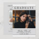 Celebrate your graduate with this modern light grey photo graduation party invitation featuring a clean “GRADUATE” headline and an elegant framed photo layout. Personalise the graduate name, school, class year, and party details for a polished, easy-to-read design. The coordinating back includes a matching framed photo and the party details for a cohesive set. A timeless neutral style that works with any school colours and graduation theme.