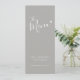 Modern simple grey and white text wedding dinner menu or special event menu. Edit this 4 course menu with your own words. Simple yet modern typographic and little white heart modern menu. Ideal for a simple grey wedding or heart or grey white themed event. © Design www.mylittleedenweddings.com on zazzle.