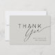 Show your appreciation to bridal shower guests with our minimalist thank you card template. Featuring elegant black calligraphy on a soft grey background, this sophisticated design combines modern simplicity and timeless elegance. Personalise it easily with your unique message and special touches, creating a memorable keepsake for your loved ones.