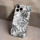 Modern Grey Tropical Leaves Pattern Custom Name Case-Mate iPhone Case