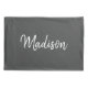 If you love minimalist style bedroom decor, take a look at this Modern Grey White Chic Script Personalised pillow case. Both sides are modern designed with a customisable dark grey background and personalised with name in white. Click personalise template option and follow the prompt.