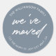 Modern Grey White Script We've Moved Address Classic Round Sticker