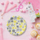 Modern and fun, this pattern of yellow and grey bubbles in sizes small to large can be used for a variety of events from birthdays and showers to corporate kickoffs.