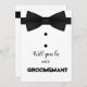 The Modern Groomsman Bow Brush Script Request Invitation features a black bow tie and the invitational or a Groomsman on an elegant white brush script design which is easily customisable by you. You will love the simplicity and detail of your memorable invitation and your guest will be thrilled to get it.