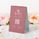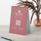 Make Wifi access easy and stylish with this White Wifi Password with QR Code Table Tent Sign on dusty red background. Perfect for Airbnb hosts, vacation rentals, guest rooms, cafés, salon, studio and offices, this minimalist Wi-Fi wall sign helps guests or customers connect quickly.