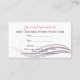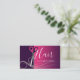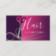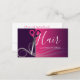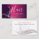 Modern purple/pink appointment Business Cards. The design features a pair of scissors and an elegant hair swirl.The background is dark purple and a vibrant pink. Customise the template text with your business information to make it your own unique business calling card. Artwork by ChanDraws Art & Design. Feel free to contact me if you need help with the customisation or if you would like matching products. kepplemorgan@shaw.ca
