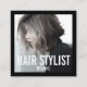Hairstylist modern photo square business card. The elegant and clean layout with a thin frame on the front and backside of this photo business card allows you to showcase your own photo on the front side of the card. Your profession and name are styled in modern straight bold typography letters. Design suitable for hairstylists, makeup artists, bloggers photographers, and other creative businesses. The photo on the business card is only a sample photo, please upload your own. Designed by Luxbelle design.