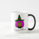 Add some magic to spooky holidays and sip your warm beverage from this Modern Halloween Witch Glam Script Personalised Magic Mug.  Add your hot coffee and watch the design appear!  The glamour witch was created from art work and she has purple pink hair, a green face and spooky eyes. The text is "Happy Halloween" and your name in black trendy hand lettered script font.  Design is on both sides.  Makes a great Halloween birthday gift idea!