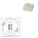 Modern Hand-drawn Leaves Ex Libris Custom Name Rubber Stamp. Featuring an elegant frame with hand-drawn leaves on either side and a rounded border. Easily personalise with your initials and name to create your own bookplate.
