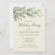 Personalise this invitation template to create a unique original art business holiday party invitation. I hand drew the elegant sage green pine and berries design for you. The evergreen and bows are overlaid with a juniper pine green gradient. All of the modern elegant script in sage eucalyptus green is editable. Personalise this holiday party invitation with your company name and party details and check the results for your satisfaction. "Holiday Party" written in stylish chic text is editable. On the back is additional space for your custom message if desired. I hope you enjoy this one of a kind botanical Christmas holiday party invitation. See my collection for coordinating napkins, paper plates, envelopes, and Christmas dinner party supplies. Corporate holiday party invitation template cream and pine.