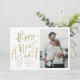 Wish loved ones a Happy New Year in style with our Modern Gold Hand-Lettered New Year holiday photo card! The chic holiday photo card features "Happy New Year" in a gold, hand-lettered script. Personalize the card by adding your name, the year, and your favorite photo. The card reverses to a pattern of gold and white starburst snowflakes.