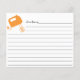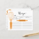 Contemporary Bridal Shower Kitchen Recipe Cards featuring a stylish hand lettered black typography script font with a tangerine orange whisk, rolling pin & hand mixer. The front of our recipe card offers room for a recipe title, from the kitchen of and ingredients space. Flip our recipe card view directions. Visit our shop for matching bridal shower invitations Available in our shop in a large assortment of popular wedding shower colours. Perfect bridal shower invitation insert for a stock the kitchen bridal shower.