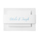 A very elegant and unique whimsical blue and white Italian wedding belly band. That matches the whole wedding hand written whimsical suite theme vibe. It has white background and blue hand written bride and groom's names. with whimsical style standing on the middle.
