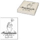 This modern "Handmade" stamp features a hand with a flower and a custom name.