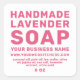 Modern and minimal handmade lavender soap sticker with your name and website or address in hot pink simple stylish typography on a white background. Simply add your business name, the product name, ingredients, weight and your website or address to the label. Exclusively designed for you by Happy Dolphin Studio. If you need any help or matching products, please contact us at happydolphinstudio@outlook.com.