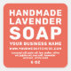 Modern and minimal handmade lavender soap sticker with your name and website or address in white simple stylish typography on a mandarin red background. Simply add your business name, the product name, ingredients, weight and your website or address to the label. Exclusively designed for you by Happy Dolphin Studio. If you need any help or matching products, please contact us at happydolphinstudio@outlook.com.