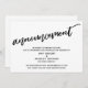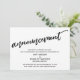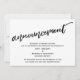 This suite's distinction is due to the modern, handwritten script font used for accent phrases. In the event that you need to let your guests know that your wedding has been cancelled, this card provides a bold, eye-catching option. In this piece, the hand-lettered script font was used to create a graphic simple depicting the word "announcement". Use the template fields to add your personal details and make this unique, modern design your own. The white background can be changed to any colour you prefer. Please reach out with any special requests or for customising assistance. // 100 //