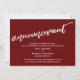 This suite's distinction is due to the modern, handwritten script font used for accent phrases. In the event that you need to let your guests know that your wedding has been cancelled, this card provides a bold, eye-catching option. In this piece, the hand-lettered script font was used to create a graphic simple depicting the word "announcement". Use the template fields to add your personal details and make this unique, modern design your own. The solid background can be changed to any colour you prefer. Please reach out with any special requests or for customising assistance. // 100 //