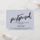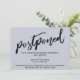 This suite's distinction is due to the modern, handwritten script font used for accent phrases. In this piece, the hand-lettered script font was used to create a graphic depicting the word "postponed", large and bold. Use the template fields to add your personal details and make this unique, modern design your own. The background can be changed to any colour you prefer. Please reach out with any special requests or for customising assistance. // 100 //