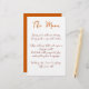 This casual and modern wedding menu with a font that mimics handwriting is perfect for a summer wedding, fall wedding, casual wedding or any other celebration where you would like to use custom menu cards. This menu template features a burnt orange background on the back of the card- all colours of this wedding menu card can be customised in the design tool! There you can also change the placement of the text.