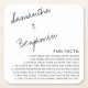 Modern Handwritten Black & White Fun Facts WeddinG Square Paper Coaster