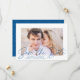 Announce your wedding date in style with our trendy modern photo save the date cards. The design displays your engagement photo with "Save the Date" in a blue handwritten script overlay. Personalise the front of the save the date photo card by adding your names, wedding date, and wedding location. The simple save the date photo card reverses to a blue and white dotted geometric pattern.