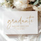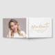 Commemorate your graduate’s big day with this elegant graduation guest book, designed to capture heartfelt messages and lasting memories. Featuring the word "graduate" in a stunning gold handwritten script on a clean white background, this guest book adds a touch of sophistication to any celebration. Personalise it with the graduate's name, school name, and graduation year for a custom keepsake. The spine showcases the graduate's name and graduation year, ensuring it's a cherished memento for years to come. The back features a full-bleed horizontal photo of the graduate, adding a personal touch to this stylish guest book. Perfect for both high school and college graduates, this guest book is a beautiful way to preserve special messages and celebrate their accomplishments.