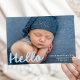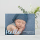 Welcome your little one with this sweet and modern photo birth announcement featuring your baby's horizontal photo and the word "Hello" in a cheerful sky blue handwritten script. Personalise the front with your baby's name, birth date, and birth stats for a heartfelt introduction. The back includes a collage of six square photos with space below to share your family’s names—a charming and stylish choice, perfect for celebrating baby boys.