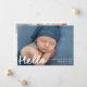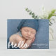Celebrate your new arrival with this modern and heartwarming photo birth announcement featuring your baby's horizontal photo and a cheerful handwritten "Hello" in white script overlay. This clean, minimalist design allows you to customise your baby's name, birth date, and birth stats on the front, creating a sweet and personal introduction. The back showcases a collage of six square photos—perfect for capturing different moments from your newborn session—with space below to include your family’s names. A stylish and photo-forward design ideal for baby boys, baby girls, or gender-neutral announcements.