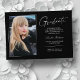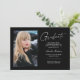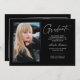 Double sided, two photo modern and elegant graduation announcement cards, featuring design elements of modern text with a unique handwritten style ink script in white for darker background colour choices. The graduate's photos on the front & back of the card are accented with a delicate & minimalist gradient boarder. The front of the card offers personalised text spaces for information about your graduation. Black & White or easily customise the background to match your school's primary colour or any colour of your choice. Perfect for the high school, college and university grad student.