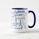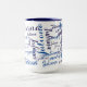 modern handwritten names pattern on blue mug