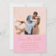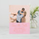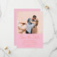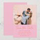 This photo save the date puts your favorite couple photo front and center, with names, wedding date, location, and website displayed below in a warm pink and orange color combination that feels bold, modern, and completely celebratory.