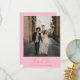This wedding thank you card features a large couple photo with a warm pink panel below showing a flowing orange script "Thank You" and the couple's names. A heartfelt, colorful way to thank guests after the wedding that feels just as bold and joyful as the rest of the suite. Photo and all text are fully editable.