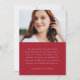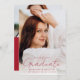 Announce your graduate's achievements and plans with this stylish, modern photo graduation announcement. The front of the announcement displays the graduate's full-bleed vertical photo. "Graduate" is displayed in a trendy, handwritten red script. Personalise the announcement with the graduation year, graduate's name, and school name. The announcement reverses to display an additional photo with your custom text below in white lettering with a solid red background. This 2 photo graduation announcement is perfect for high school or college graduations.