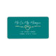 Simple, minimalist, teal green wedding return address label with gold rope heart and modern handwritten calligraphy script.