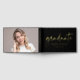 Capture heartfelt messages and memories with this elegant graduation guest book, featuring "graduate" in a stunning gold foil script on a sleek black background. Personalise it with the graduate's name, school name, and graduation year in matching gold foil lettering for a sophisticated touch. The spine showcases the graduate's name and grad year, while the back displays a full-bleed horizontal photo, making it a cherished keepsake. Perfect for both high school and college graduates, this stylish guest book is a beautiful way to commemorate their special day.