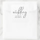 A simple wedding sticker design with minimalist appeal and modern styling, this design features the words "the wedding of" using an edgy contemporary handwritten type face paired with a crisp serif type face. A text template is included to personalise with the bride and groom's names. The look is chic with a congenial flair. These stickers are available in 2 sizes: 3-inch diameter and 1 1/2 inch diameter. Use on favours, gifts, or other wedding items for a custom look for your special day. Other matching items are available in this unique design.