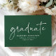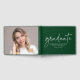 Celebrate the graduate's milestone with this elegant and customisable graduation guest book. Featuring "graduate" in a white handwritten script on a green background, this guest book adds a personal touch to any graduation celebration. Easily personalise it by adding the graduate's name, school name, and graduation year below. The spine of the guest book displays the graduate's name and graduation year, while the back features a full-bleed horizontal photo, creating a truly unique and cherished keepsake. Perfect for both high school and college graduates, this stylish guest book is a wonderful way to capture heartfelt messages and memories from friends and family on such a special day.